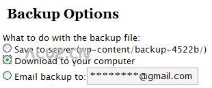 - 在备份的控制选项中,我们可以选择三种备份方式;一般选择备份到邮箱。