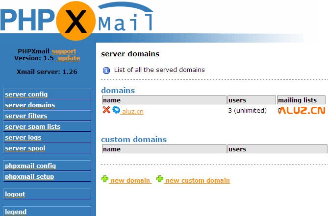 如果想新添用户或者对已有用户进行修改(如密码),则在server domain点List of all the served domains下面的yocn.net前的配置按钮。